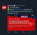 【緊急速報】メッシ、バルサ退団希望を提出!スペイン主要メディアが一斉に報じる!!!