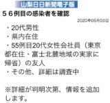 【悲報】山梨コロナ女と5/1夜から5/2未明に濃厚接触した男性、感染