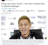 ◆悲報◆本田圭佑さん、元日本代表の肩書を嫌がる「ナショナルチャレンジャーと呼んでほしい」